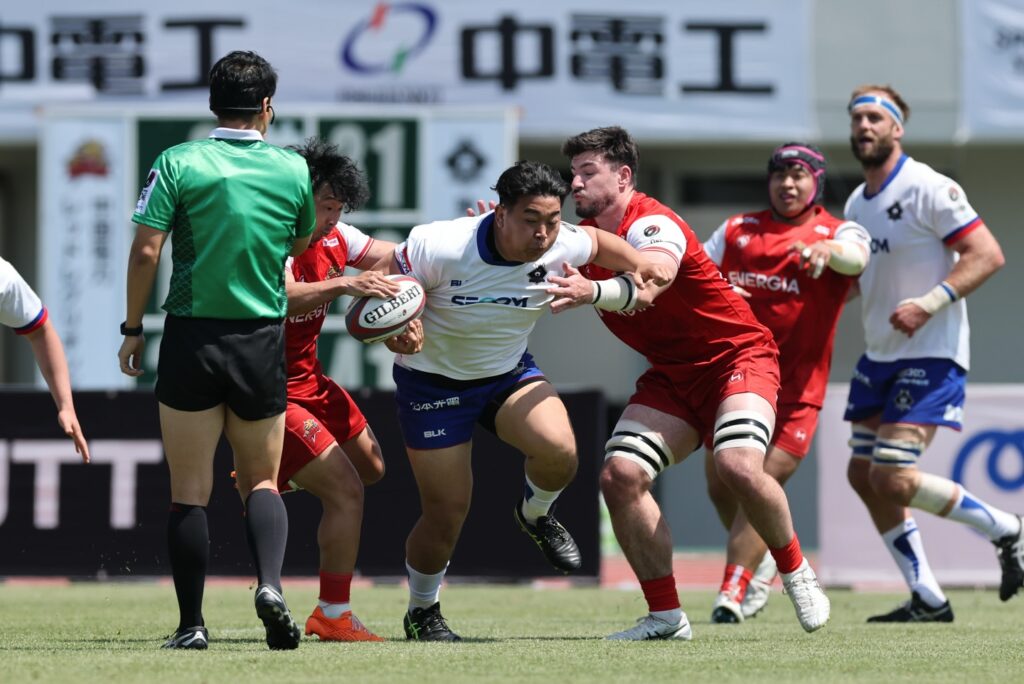 25分には、この日主役級の活躍を見せた寺西選手が4本目のトライをマーク。最後は28分、快足WTB藤原竜之丞選手がダメ押しのトライを挙げ、リードを広げました。終盤に中国電力の反撃を許したものの、大勢に影響はなく、55-29でノーサイドを迎えました。