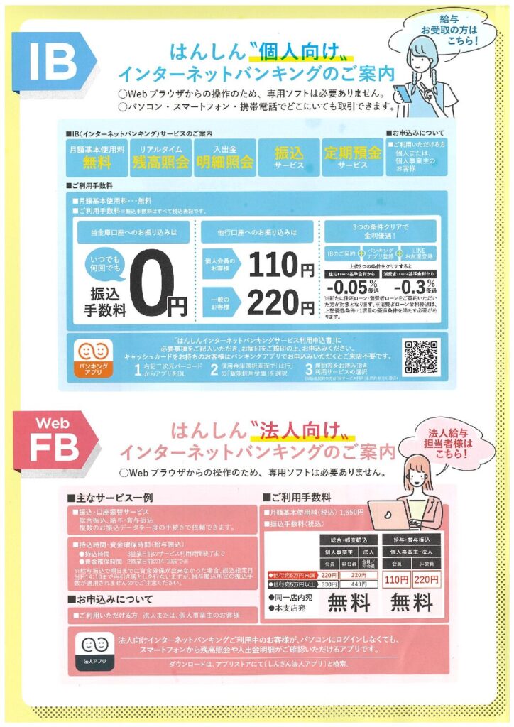 - 振込・残高照会は… → インターネットバンキング(はんしんIB)を利用する(月額0円、便利)
