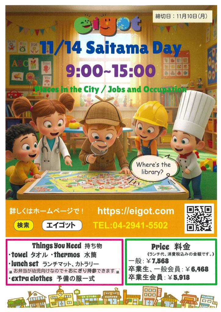 毎年県民の日はSAITAMA DAYとして英語保育園エイゴットが丸々1日英語で過ごす日のイベントを開催しています。