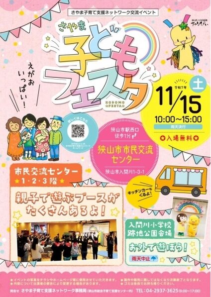 狭山市にお住まいの子育て中の皆さん、お待たせしました! 2025年11月15日(土)、狭山市駅西口の「狭山市市民交流センター」と「入間川小学校跡地公園」を会場に、「さやま子どもフェスタ」が開催されます。