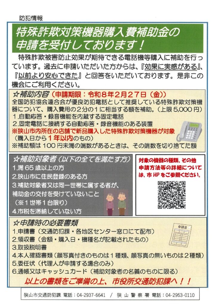 狭山市民の皆様、ご自宅の固定電話やスマートフォンに「総務省」や「NTT」を名乗る不審な電話がかかってきていませんか?
