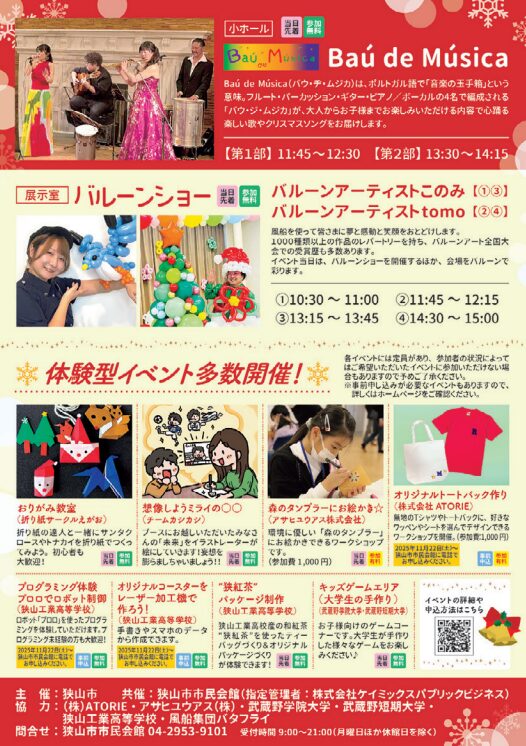 ※各ワークショップには定員がある場合や、材料がなくなり次第終了となる場合があります。詳細は狭山市市民会館の公式情報をご確認ください。