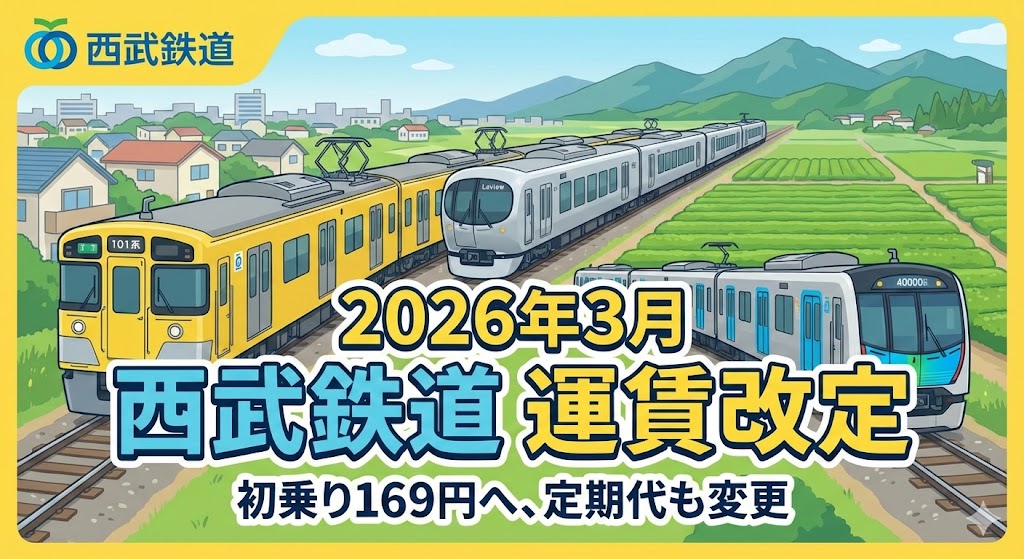 狭山市での生活に欠かせない「西武鉄道(西武新宿線・池袋線)」ですが、2026年3月14日(土)より運賃改定が実施されることが発表されました。