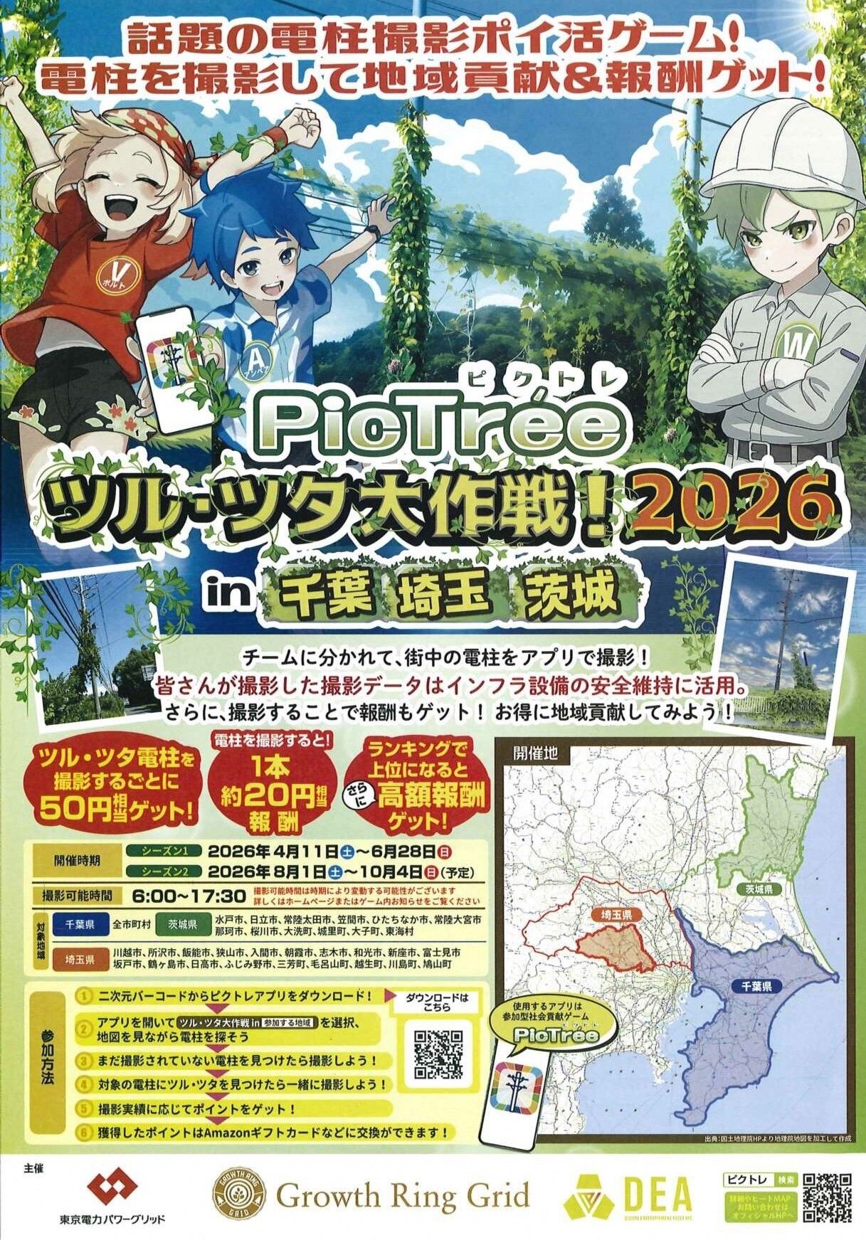 2026年4月11日より、スマートフォンアプリ「PicTrée(ピクトレ)」を使った市民参加型イベント「ツル・ツタ大作戦 2026」が狭山市を含むエリアで開始されました。