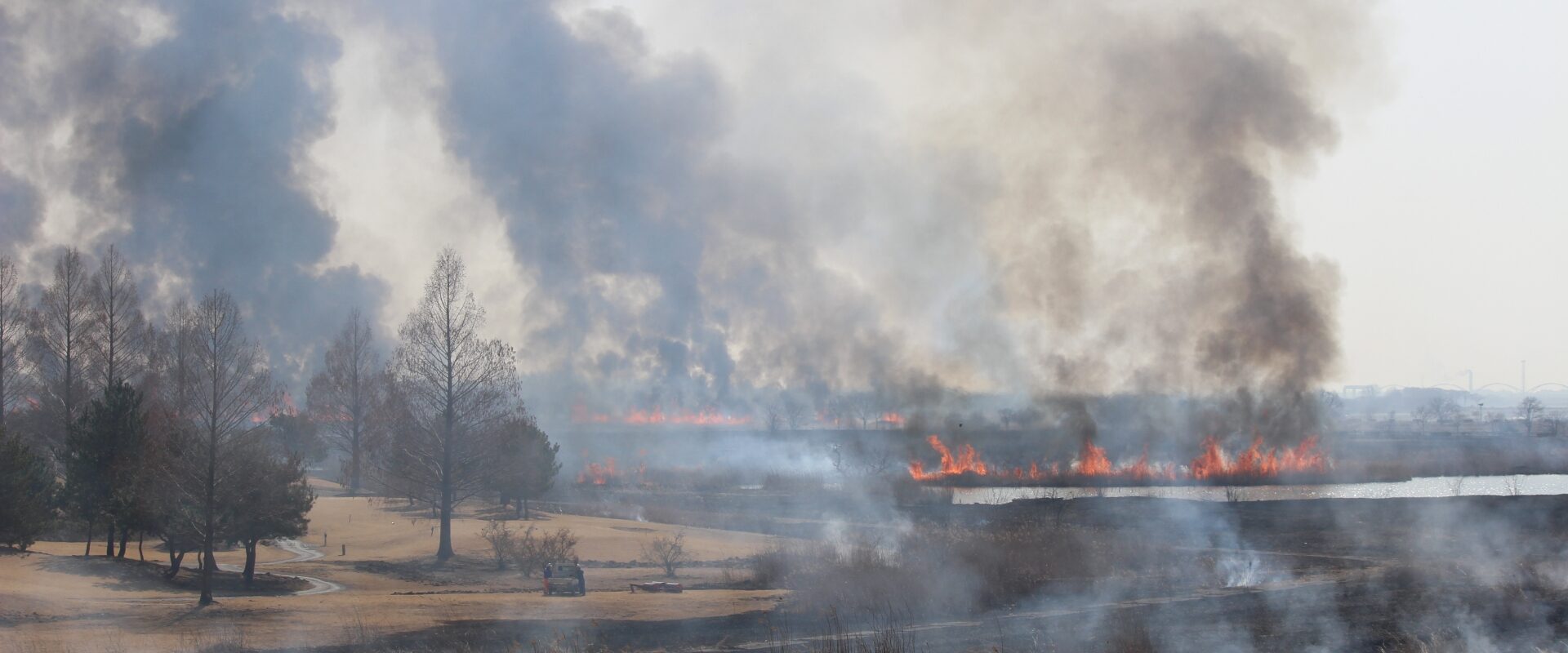 渡良瀬遊水地のヨシ焼きの煙か?狭山市上空まで広がる煙